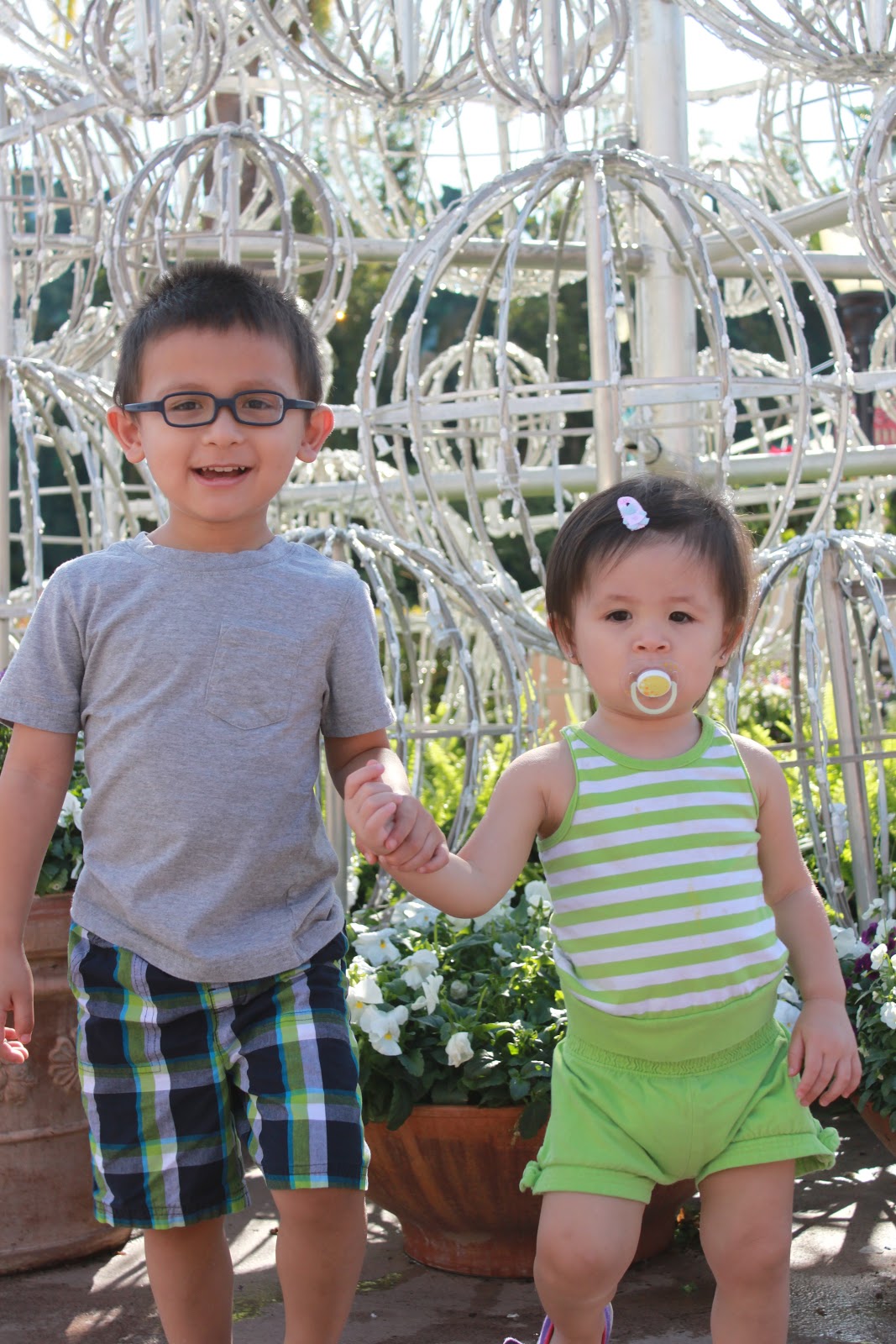 After we checked out, we headed to Downtown Disney to walk around and have some lunch. We parked near the Lego store and Parker wanted to go in. He remembers it from when we went last summer and Lola bought him a Lego train set...I think he was trying to score more toys! Parker kept running from toy to toy...he couldn't decide where to go first. He found a huge train set for older kids and really wanted it...it was over $150 and he does not need a new train set and one that expensive. We talked him down to a small Lego set and Avery got her first set of Duplos. Then Parker wanted to go to the Disney store. He found a Mickey Mouse train set and threw a fit. He tried to carry the huge box to the register - a few customers saw him, laughed, and commented that it was cute. I probably would have said the same thing...if it wasn't my child doing it. I tried to calmly tell him that he needed to be a good boy and listen and we would write a letter to Santa asking for a train set. He was having none of it! He wanted this train set and he wanted it now. I dragged him out kicking and screaming.